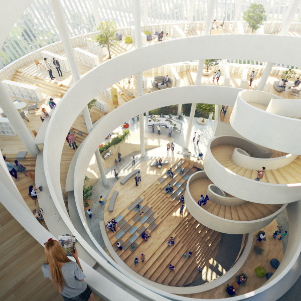 경기도서관의 디자인을 보면 광교 신청사(경기융합타운)에서 새로운 100년을 준비하는 경기도의 비전을 수용한다는 의미로 타원 형태를 채택했다. 또한 외부로부터 도서관 내부 공간을 연결하는 나선형의 흐름으로 외부와 내부의 유기적 연속성을 강조했고, 중심부 나선 계단이 옥상의 하늘정원으로 도달하는 독특하고 창의적인 보행 동선을 구현해 냈다.