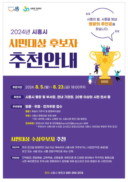 | ▲2024년 시흥시 시민대상 후보자 추천안내 포스터(사진=시흥시) |