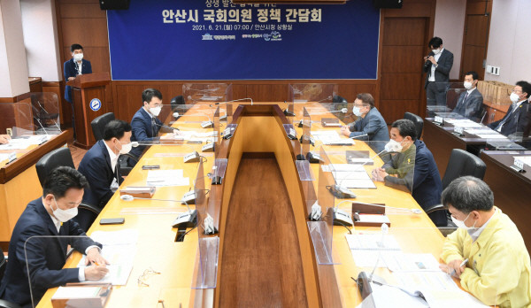 [프레스뉴스] 강보선 기자= 윤화섭 안산시장은 21일 김철민·고영인·김남국·전해철(보좌관 대리참석) 등 안산지역 국회의원과 정책간담회를 갖고 시정 주요현안을 공유하며 지역 발전을 위한 다양한 의견을 논의했다.