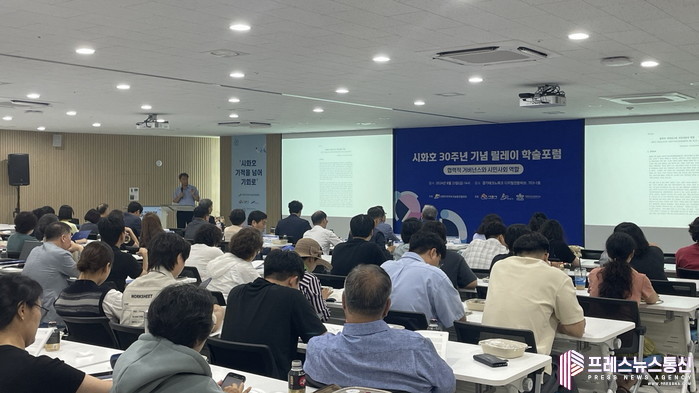 [프레스뉴스] 장현준 기자= 시화호 30주년 기념 릴레이 학술포럼 2차 대회가 ‘협력적 거버넌스와 시민사회 역할’을 주제로 23일 경기테크노파크(디지털전환허브)에서 개최됐다.