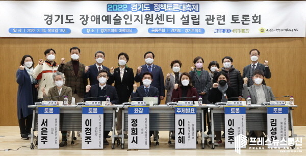 [프레스뉴스] 김대일 기자= 경기도의회 기획재정위원회 정희시 위원(더불어민주당, 군포2)이 좌장을 맡은 「경기도 장애예술인지원센터 설립 관련」 토론회가 24일(목) 경기도의회 대회의실에서 개최됐다. 경기도와 경기도의회가 공동주최한‘2022 경기도 상반기 정책토론 대축제’의 일환으로, 이번 토론회는 경기도 장애예술인지원센터 설립 관련에 대해 논의할 필요성이 대두함에 따라 개최되었다.