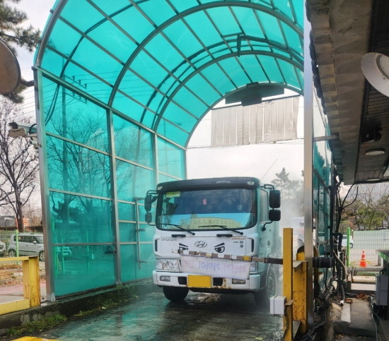 | ▲운송 차량 방역 모습(사진=경기도북부청) |