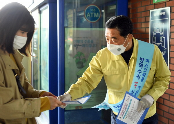 [프레스뉴스] 김대일 기자= 안산시(시장 윤화섭)는 20일 출근길 인파가 몰리는 중앙역 앞 광장에서 코로나19 확산 방지를 위한 봄철 특별방역 캠페인을 펼쳤다.