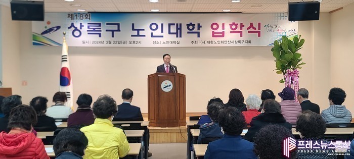 [프레스뉴스] 장현준 기자= 안산시(시장 이민근)는 지난 22일 상록구 노인지회(지회장 김중근)가 상록구지회(상록구 성포동 소재) 노인대학실에서 제18회 상록구 노인대학 입학식을 개최했다고 23일 밝혔다.