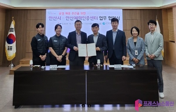 [프레스뉴스] 장현준 기자= 안산시(시장 이민근)는 지난 17일 오후 시청 제1회의실에서 공정한 채용 업무추진을 위해 ‘국민체력100 안산체력인증센터(센터장 곽동민)’와 업무협약을 체결했다고 18일 밝혔다.