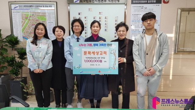 [프레스뉴스] 장현준 기자= 안산시(시장 이민근)는 지난 21일 문화세상고리 협동조합(대표 백승희)으로부터 이주배경청소년을 위한 사랑의 성금 100만원을 기탁 받았다고 22일 밝혔다.