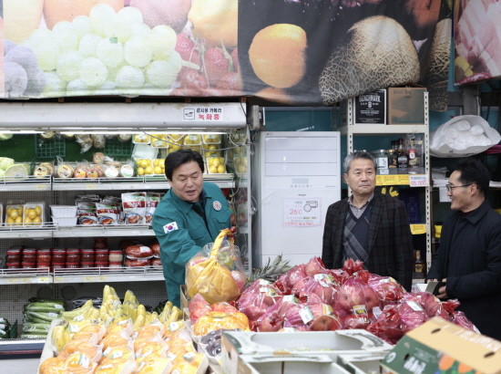 이번 정왕시장 방문은 민족 대명절인 설을 앞두고, 위축된 소비심리와 경기 불황으로 어려움을 겪고 있는 전통시장에 활기를 불어넣고, 상인들을 격려하며 설 성수품에 대한 가격 동향을 파악하고자 마련됐다.