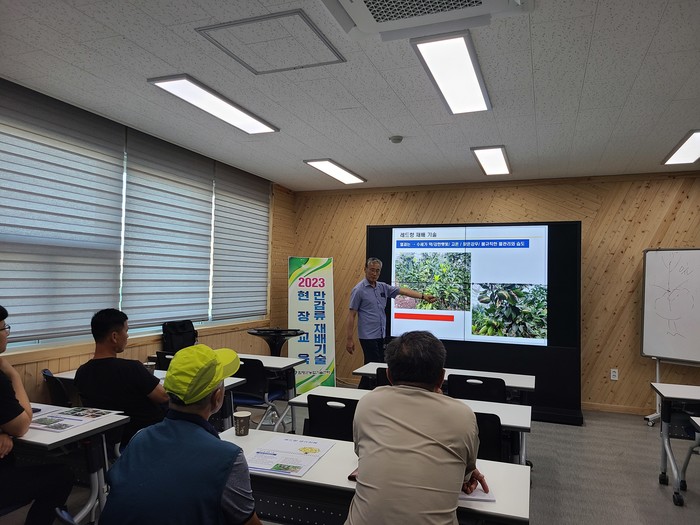이번 교육은 만감류 수확기까지 물관리, 온도관리, 열과 등 생리장해 해결 등을 중심으로 실시됐다.
