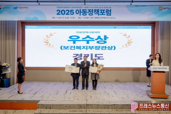 경기도는 지난 8일 오후 강원특별자치도 원주시 오크밸리에서 열린 ‘2025년 제13회 아동정책포럼’에서 아동정책시행계획 추진실적 평가 우수상을 수상했다.