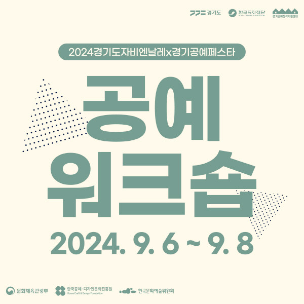 공예워크숍은 작가 작품시연 프로그램으로 9월 6일 개막하는 국제 도자예술 행사 ‘2024경기도자비엔날레’와 경기도 대표 공예문화 축제 ‘2024경기공예페스타’와 연계해 진행된다.