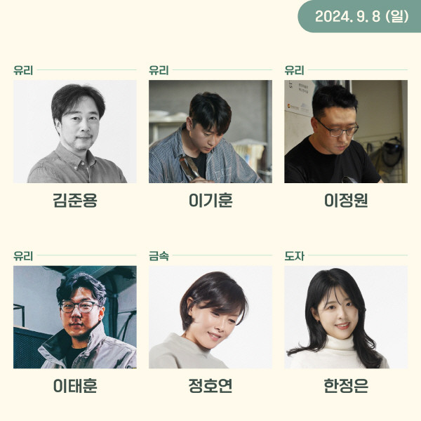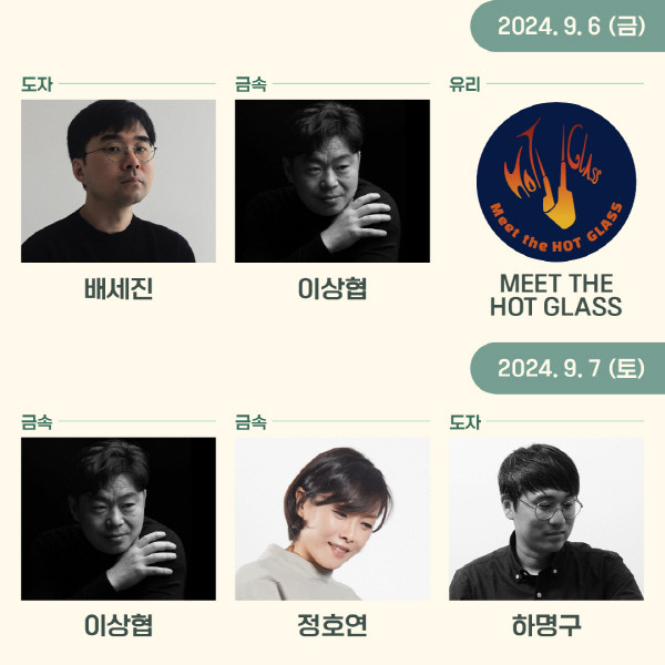 주요 작가로는 도자, 금속, 유리 세 분야에서 ▲배세진 ▲하명구 ▲한정은 ▲이상협 ▲정호연 ▲김준용 ▲윤호석 ▲이기훈 ▲이정원 ▲이태훈 ▲브리 채슬러(Bri Chesler) ▲핫글라스 작가회(Meet the hotglass) 등 총 14개의 팀이 참여한다. 특히 넷플릭스 서바이벌 프로그램(블로잉: 유리 아트 서바이벌, 시즌3)에서 2·3위를 차지한 민히 수 잉글랜드(Minhi Su England)와 존 샤빈(John Sharvin)의 작품 시연을 기대해볼 만하다.