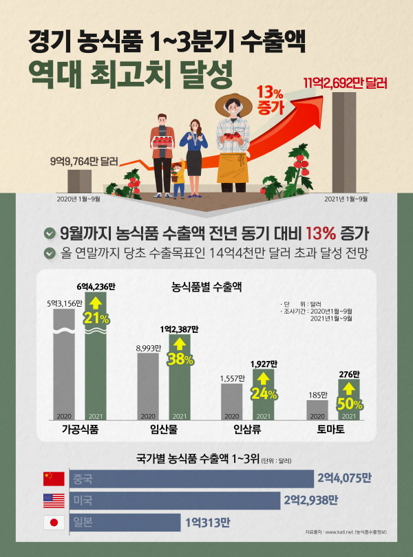| ▲ 경기 농식품 1~3분기 수출액 역대 최고치 달성 그래픽(사진=경기도) |
