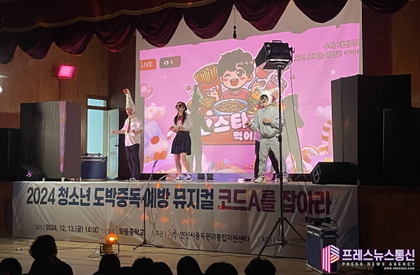 [프레스뉴스] 장현준 기자= 안산시(시장 이민근) 중독관리통합지원센터는 지난 13일 와동중학교에서 전교생 453명을 대상으로 청소년 도박중독 예방 뮤지컬 ‘코드A를 잡아라’를 상연했다고 16일 밝혔다.