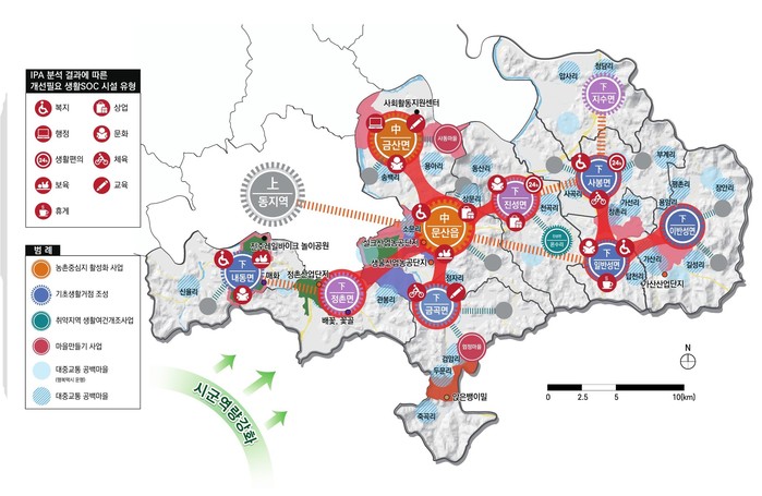 또한 농촌중심지 사업 외 금곡면과 진성면에 기초생활거점 조성사업을 추진하고 있다. 이에 따라 면소재지를 대상으로 다양한 서비스 기능을 복합화한 생활SOC시설을 조성하고 서비스와 프로그램을 배후마을까지 전달할 계획이다.