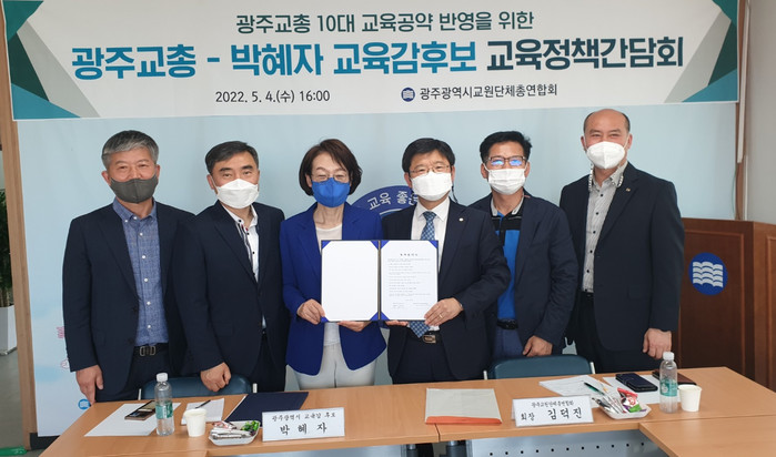 협약식에서 박혜자 광주시교육감 예비후보는 광주교총 대표단이 제시한 10대 교육 과제를 공약에 반영하기로 했다.