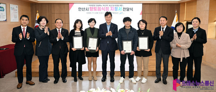 지난 6일 시청 제1회의실에서 이민근 안산시장과 육광심 한국호텔관광교육재단 이사장, 정동관 한국외식업중앙회 안산단원구지부장 및 향토음식점 대표자 등이 참석한 가운데 향토음식점 지정서 전달식을 가졌다.