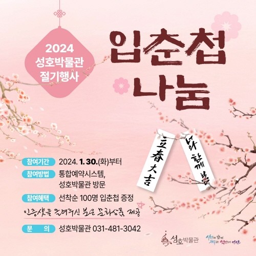 | ▲ 2024 성호박물관 절기행사 입춘첩 나눔 행사 포스터(사진=안산시) |