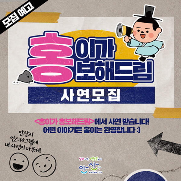 [프레스뉴스] 강보선 기자= 안산시(시장 윤화섭)는 다양한 시민의 희로애락이 담긴 사연을 안산시 SNS로 공유·공감하기 위한 이벤트 ‘홍이가 홍보해드림’을 운영한다고 22일 밝혔다.