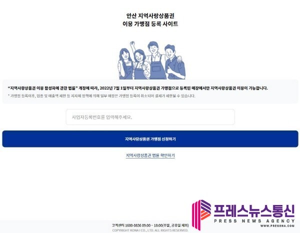 | ▲ 안산화폐 다온 가맹점 등록 사이트(사진=안산시) |