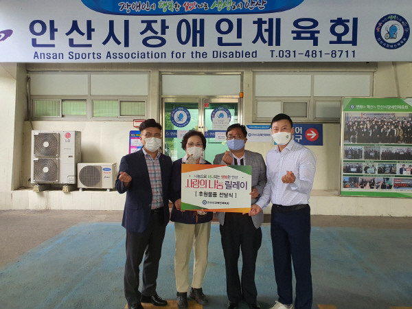 지난해 안산시장애인체육회의 후원 행사로 시작된 사랑의 나눔 릴레이는 안산시장애인체육회 이사회에서 마련한 후원금으로 매월 경제적으로 어려움을 겪는 관내 장애인들에게 장학금, 후원금, 후원물품을 전달해 희망의 메시지를 전달하고 있다.