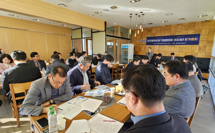 [프레스뉴스] 정호일 기자= 진주시와 진주방위산업기업협의회는 지난 28일 충무공동 소재 식당에서 방산 관련 중소기업, 경남테크노파크, 한국산업기술시험원(KTL) 등 관계자 40여 명이 참석한 가운데 ‘2024년 진주 방위산업기업협의회 정기총회 및 방산기업 지원사업 설명회’를 개최했다.