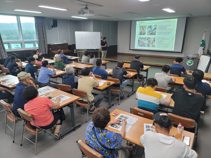 | ▲딸기 병해충 관리 기술 교육 모습(사진제공=함평군) |