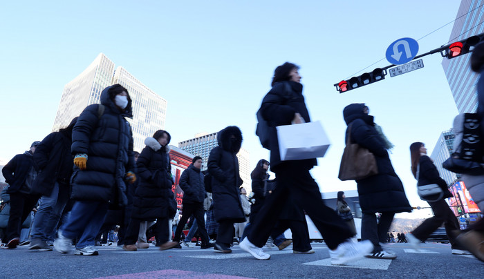 | ▲영하권의 강추위가 이어진 31일 서울 광화문네거리에서 움츠린 시민들이 2025년 마지막 출근길에 나서고 있다./사진=뉴스1 |