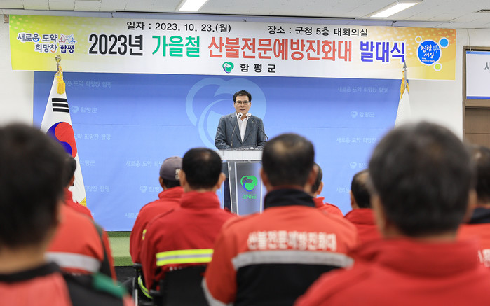 [전남=프레스뉴스] 차윤기 기자= 전남 함평군이 가을철 산불조심기간을 맞이해 산불전문예방진화대 및 관계자 50명이 참석한 가운데 함평군청 대회의실에서 지난 23일 발대식을 가졌다.