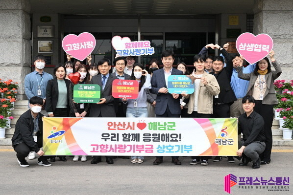 [프레스뉴스] 장현준 기자= 안산시(시장 이민근)는 지난 24일 친선결연 도시인 해남군과 고향사랑기부금을 상호 전달했다고 27일 밝혔다. 이번 기부는 안산시청 총무과와 해남군 재무과 직원들의 자발적인 참여로 이뤄졌다.