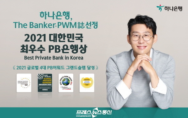 [프레스뉴스] 김대일 기자= 하나은행(은행장 박성호)은 글로벌 금융전문매체 더 뱅커(the Banker)誌와 PWM(Professional Wealth Management)誌 공동 주최 「제13회 글로벌 PB 어워드(Global Private Banking Awards 2021)」에서 국가별 최고상인 「대한민국 최우수 PB은행상(Best Private Bank in Korea)」을 수상했다고 밝혔다.