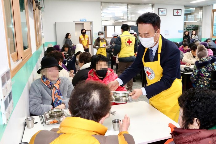| ▲박동식 사천시장, 무료급식봉사활동 사진=사천시 |