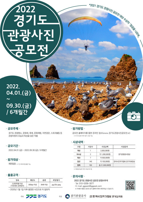 도는 2021년 경기관광 사진 공모전에 1,578점이 접수된 점을 고려해 시상 규모를 80점에서 150점 선정으로 확대했다.