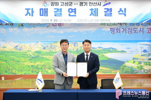 [프레스뉴스] 장현준 기자= 안산시와 강원 고성군이 지방화시대의 협력자로서 두 도시의 공동번영과 시민 행복을 위해 상호 협력하기로 했다. 안산시(시장 이민근)는 지난 20일 오후 고성군청에서 강원 고성군과 친선 결연 협약을 체결했다고 21일 밝혔다.