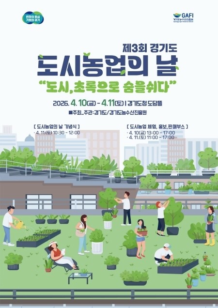 경기도가 주최하고 경기도농수산진흥원이 주관하는 이번 행사는 ‘도시, 초록으로 숨을 쉬다’라는 부제로 무너진 도심 생태계를 복원하고 시민의 마음을 치유하는 도시농업의 가치를 조명한다.