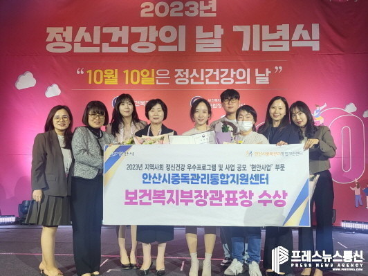 [프레스뉴스] 장현준 기자= 안산시(시장 이민근) 상록수·단원보건소는 세계 정신건강의 날을 맞아 시민의 정신건강 및 자살예방에 기여한 공로를 인정받아 단원보건소, 자살예방센터, 중독관리통합지원센터가 각각 보건복지부 장관 기관표창을 수상하는 3관왕의 쾌거를 달성했다고 11일 밝혔다.