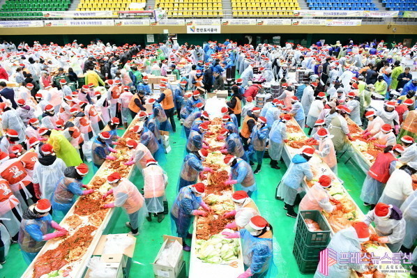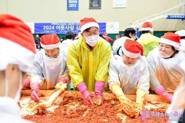 [프레스뉴스] 장현준 기자= 안산시가 폭설에도 불구, 지역 내 어렵고 소외된 이웃들의 따뜻한 겨울나기를 위해 온정의 손길을 한데 모았다. 안산시(시장 이민근)는 지난 27일 올림픽기념관에서 열린 ‘2024 김장나눔 통합행사’를 축제와 같은 분위기 속에서 성황리에 마쳤다고 28일 밝혔다.