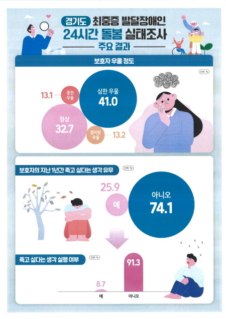 | ▲ 경기도 최중증 발달장애인 24시간 돌봄 실태조사 결과 그래픽(사진=경기도) |