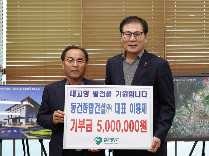 함평군은 “동건종합건설㈜ 이흥재 대표가 지난 13일 함평군청을 직접 방문해 기부금 500만원을 전달했다”고 17일 밝혔다.