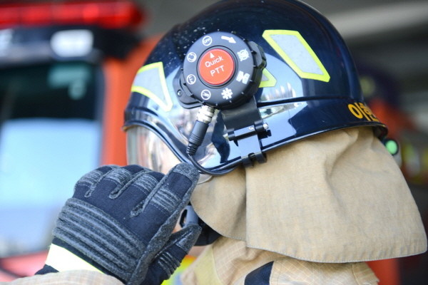 소방헬멧 부착형 핸즈프리 무선송수신기는 화재나 구조 등 긴급한 사고 현장에서 소방관들이 무전기를 조작하는 번거로움 없이 양손을 자유롭게 쓸 수 있는 장비다. 헬멧에 부착된 통신 기기와 연동해 음성인식만으로 무선통신이 가능하다.