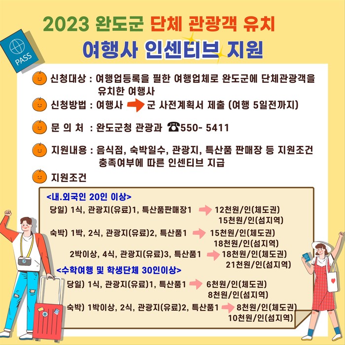 | ▲ 2023년 완도군 단체 관광객 여행사 인센티브 지원 안내문(사진제공=완도군) |