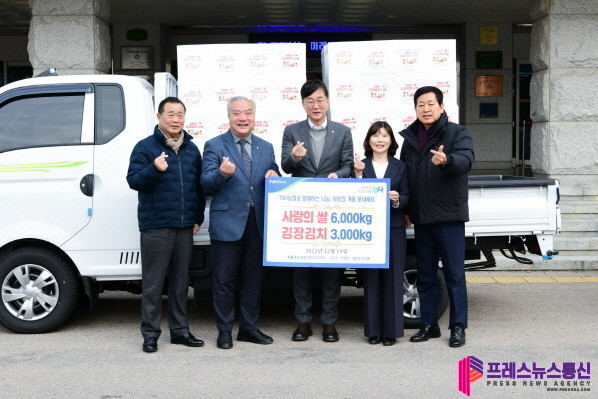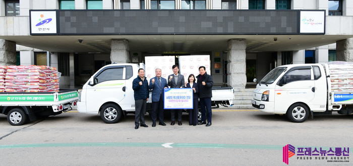 [프레스뉴스] 장현준 기자= 안산시(시장 이민근)는 지난 19일 NH농협안산시지부(지부장 강정미)와 지역농협조합군자농협(조합장 조인선), 반월농협(조합장 최기호), 안산농협(조합장 박경식)으로 부터 연말을 맞아 사랑의 쌀 600포(포대 당 10kg), 김치 600박스(박스 당 5kg), 식료품세트 200개(4천600만원 상당)를 기탁 받았다고 20일 밝혔다.