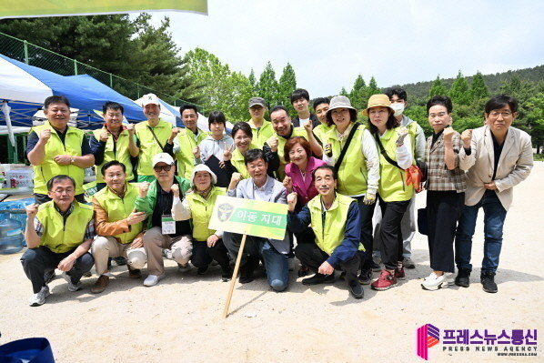 | ▲ 이민근 안산시장이 지난 21일 성호공원 소운동장에서 열린 안산시자율방범대 상록연합대 ‘제11회 한마음 체육대회’에서 참석자들과 기념촬영을 하고 있다.(사진=안산시) |