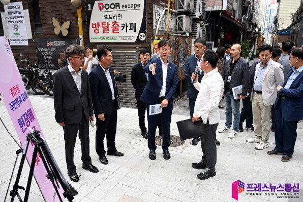 이후 이민근 시장은 중앙동 중심상업지역의 보행환경 개선과 기반 시설 정비 요청 건의에 따라 주민들과 함께 ‘현답버스’를 타고 현장을 직접 둘러보며 개선 방안을 모색했다.