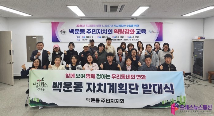 이영란 백운동장은 “지역사회의 발전을 위해 주민자치회가 책임감을 가지고 노력하고 있다”며 “자치계획단 활동이 주민이 체감할 수 있는 긍정적인 변화로 이어지길 기대한다”고 말했다.
