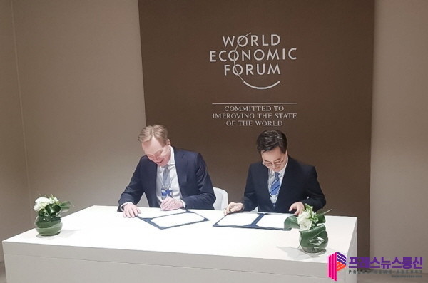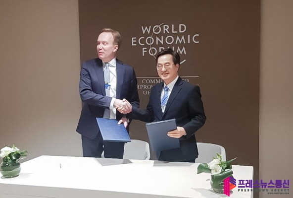 김동연 지사는 현지 시각 15일 오후 3시 스위스 다보스 콩그레스 센터에서 보르게 브렌데(Børge Brende) 세계경제포럼 이사장과 4차산업혁명센터 설립을 위한 업무협약을 체결했다.