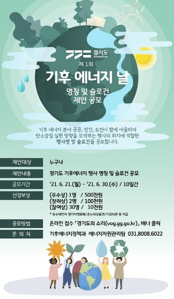 [프레스뉴스] 강보선 기자= 경기도가 ‘제1회 경기도 기후에너지 날(가칭)’ 행사에 사용할 행사명과 슬로건을 공모한다.