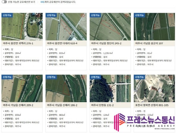 [프레스뉴스] 장현준 기자= 경기도가 현재 행정 목적으로 사용하고 있지 않은 도유재산 가운데 일반 도민에게 빌려줄 수 있는 땅을 공유시설 예약 플랫폼인 경기공유서비스에 공개하고, 온라인으로 대부신청을 받는다고 25일 밝혔다.