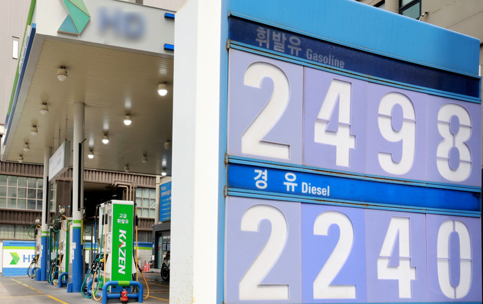 | ▲중동 사태 장기화로 국제유가 급등세가 이어진 30일 서울 시내의 한 주유소에 가격표가 표시돼 있다. 이날 오전 9시 기준 서울 평균 휘발유 가격은 리터당 1927.59원, 경유는 1902.92원을 기록했다./사진=뉴스1 |