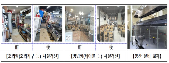 이 밖에 시설개선을 하는 제조가공업소의 경우 최대 5억 원까지, 식품접객업소는 최대 1억 원까지 금리 1%, 2년 거치 3년 균등분할 상환 조건으로 융자 지원받을 수 있다.
