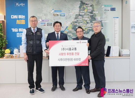 [프레스뉴스] 장현준 기자= 시흥시(시장 임병택)는 지난 2월 26일 ㈜시흥교통에서 저소득층 지원을 위해 시루 5만 원권 600여 장을 시흥시1%복지재단에 전달했다고 밝혔다.